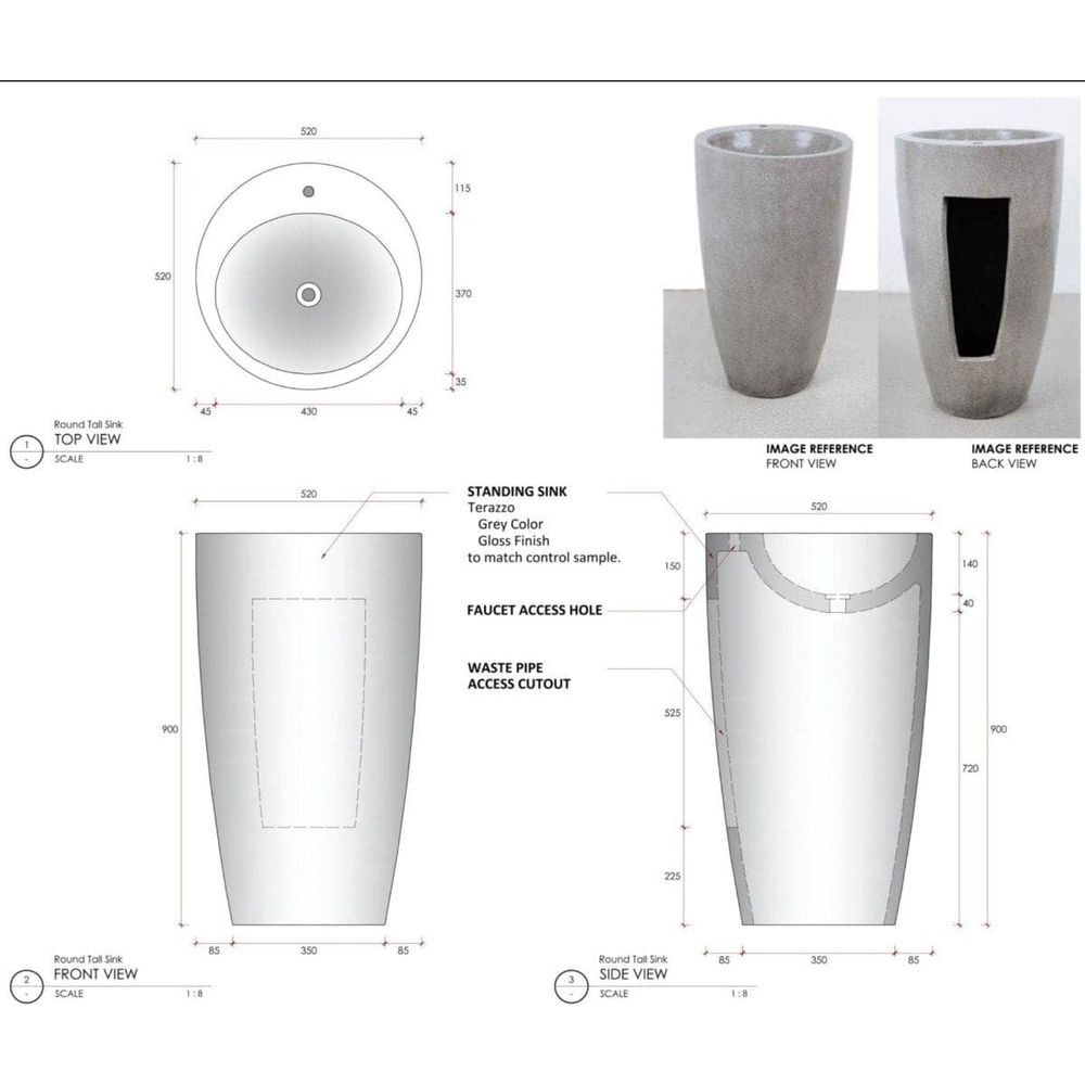 This unique pedestal sink will make a wonderful addition to any bathroom. Crafted from gray terrazzo this round sink features a hole for the faucet so you can add whatever fixture matches your decor.
