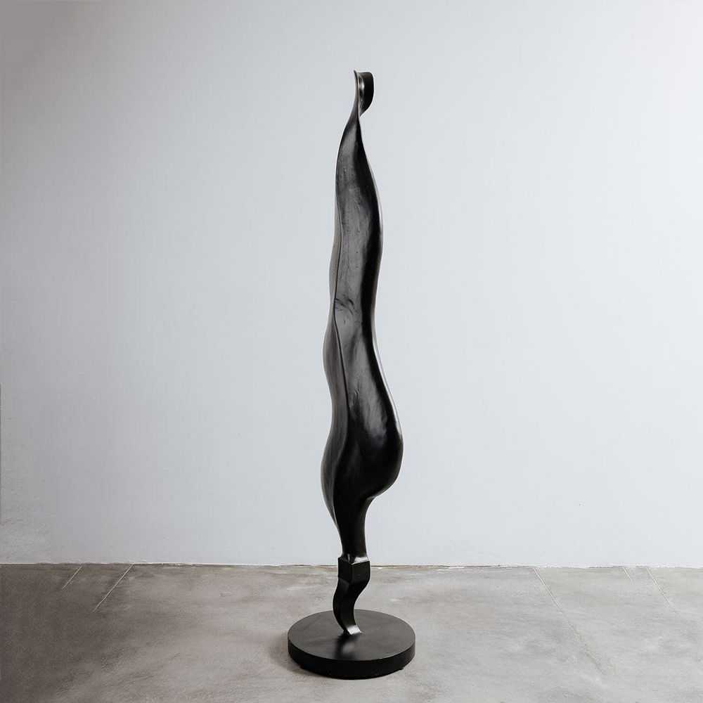 Crafted from teak with a black finish this sculpture will look great in modern and contemporary style space. The flame-like design has a fluid look one wouldn't expect to come from wood.