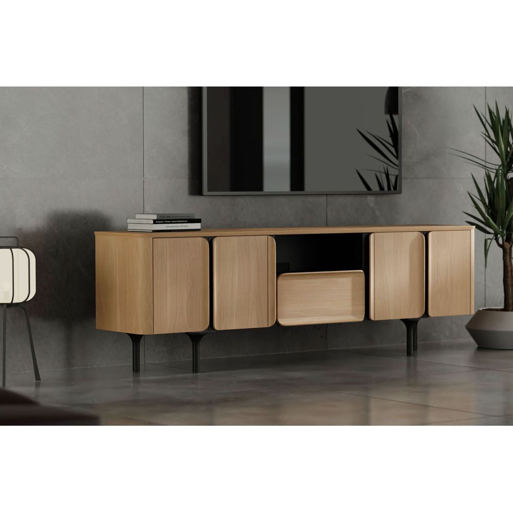 Enhance your living space with the Hancock Media Console, a beautifully crafted piece made from solid wood. Available in two elegant finishes-rich walnut and clean white oak-this media console seamlessly blends with any decor. It features four doors and a central drawer, providing ample storage for your media components and accessories. The undermount full extension and soft-closing drawer glides ensure smooth and quiet operation. With its mid-century modern design and sleek lines, the Hancock Media Console adds a touch of vintage charm to your home while offering contemporary functionality.