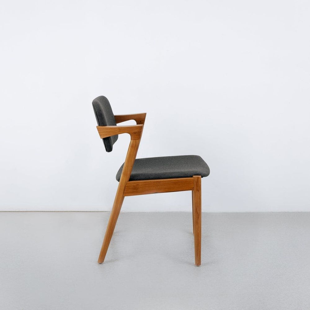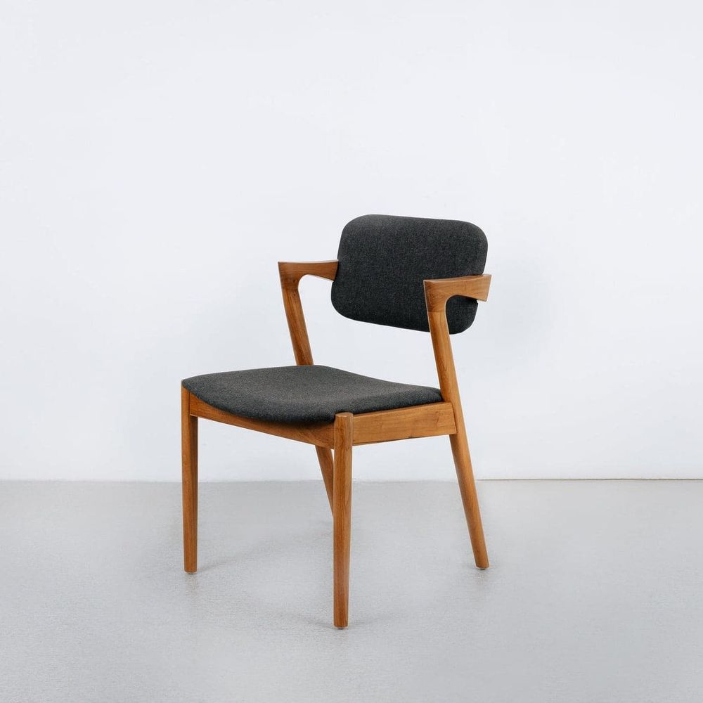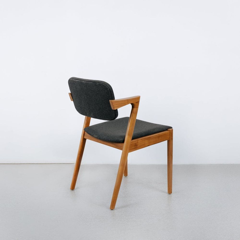 Add a touch of modern elegance to your outdoor dining space with this eye-catching dining chair. Crafted from teak wood this piece features angular arms, slightly tapered legs, and outdoor upholstered cushioning on the seat and back.