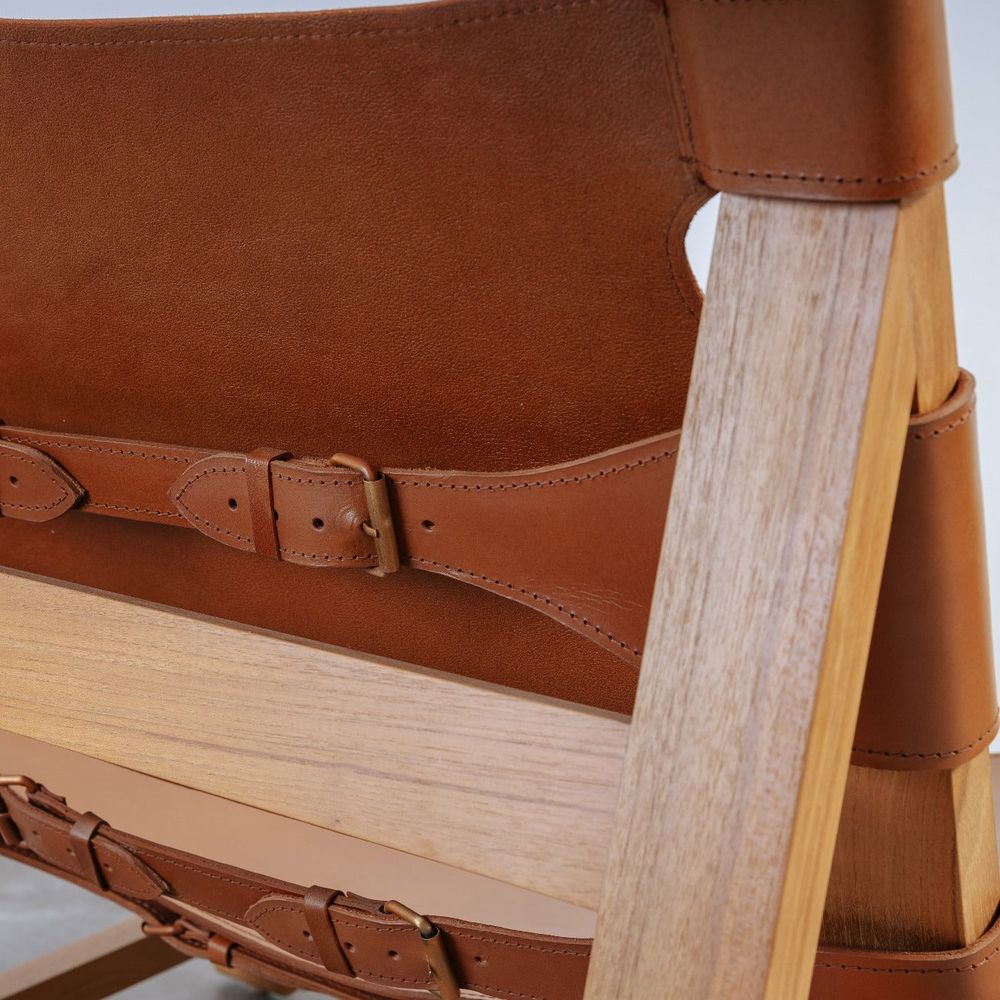 - Material: Teak with Tanned Cow Hide Leather