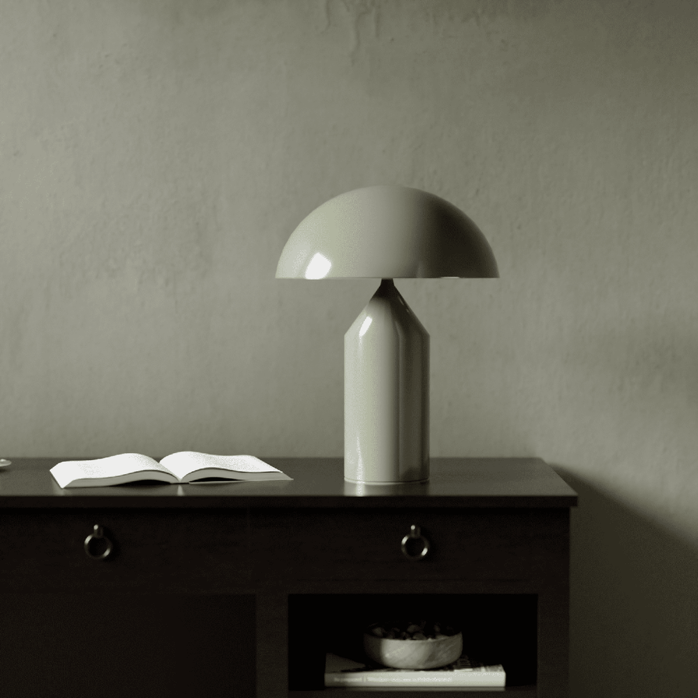 Inspired by Vico Magistretti’s original 1970s design this table lamp will add a touch of retro style cool to any space. The iconic modern design features a bold dome shade atop a pointed cylinder in solid metal with a pink finish. Two 40-watt candelabra bulbs are nestled within the shade and will provide your room with glowing ambient light.