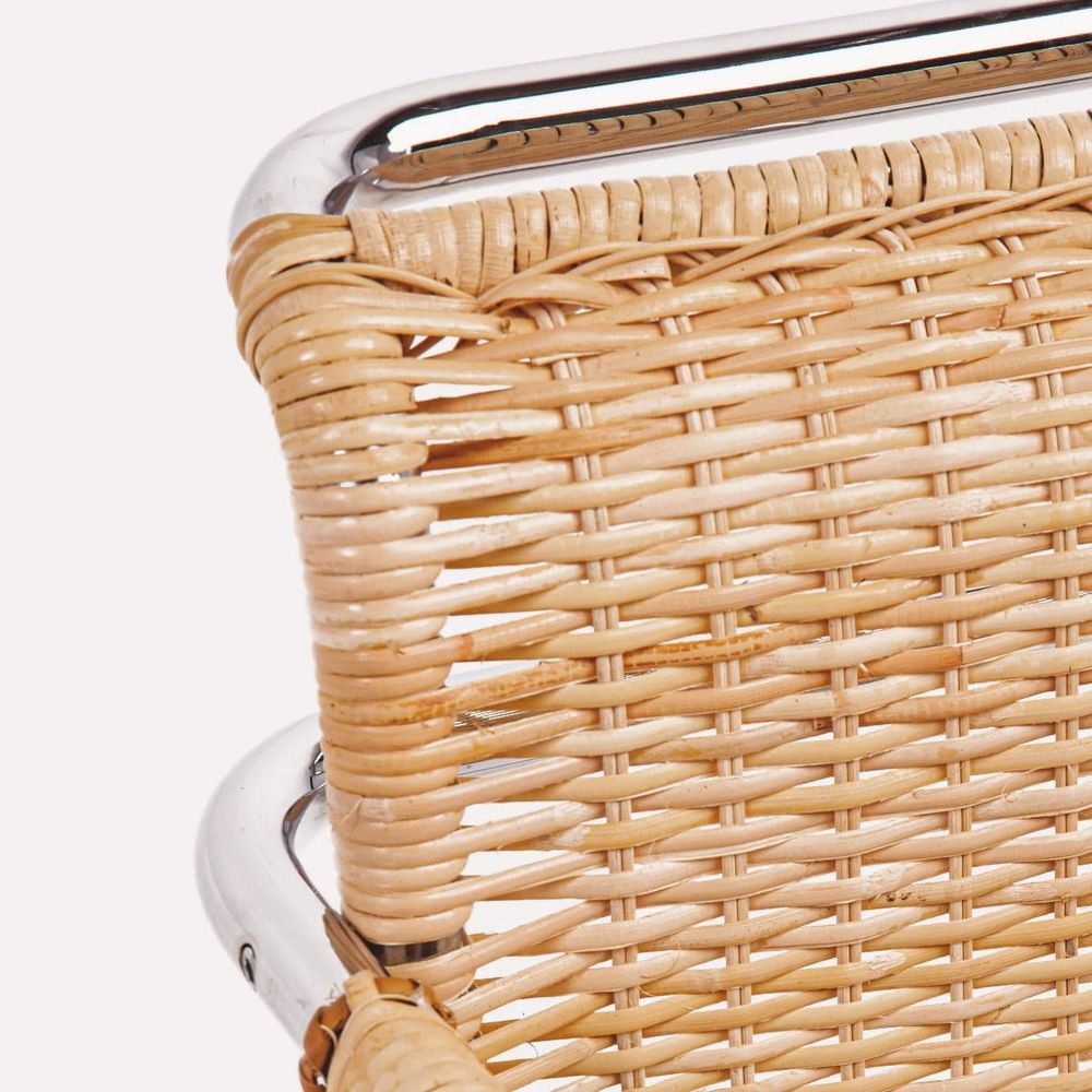 This attractive chair perfectly combines sleek Bauhaus designs with the bohemian trend of cane to create a piece with timeless appeal. The perfectly balanced steel frame provides sturdy support for the woven wicker seat.