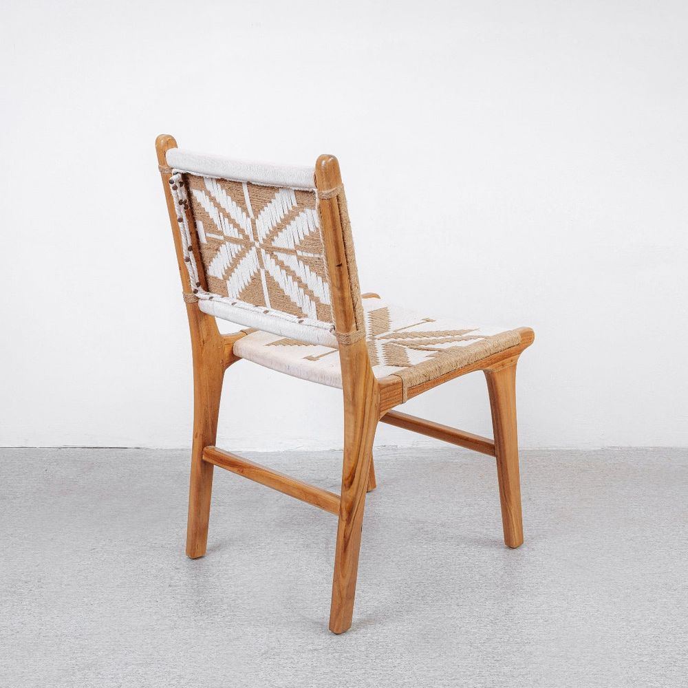 This charming side chair will shine in any dining or kitchen space. The simple frame design lets the patterned seat and back be the star of the show. Crafted from woven linen and jute rope the seat and back have a traditional starburst pattern.
