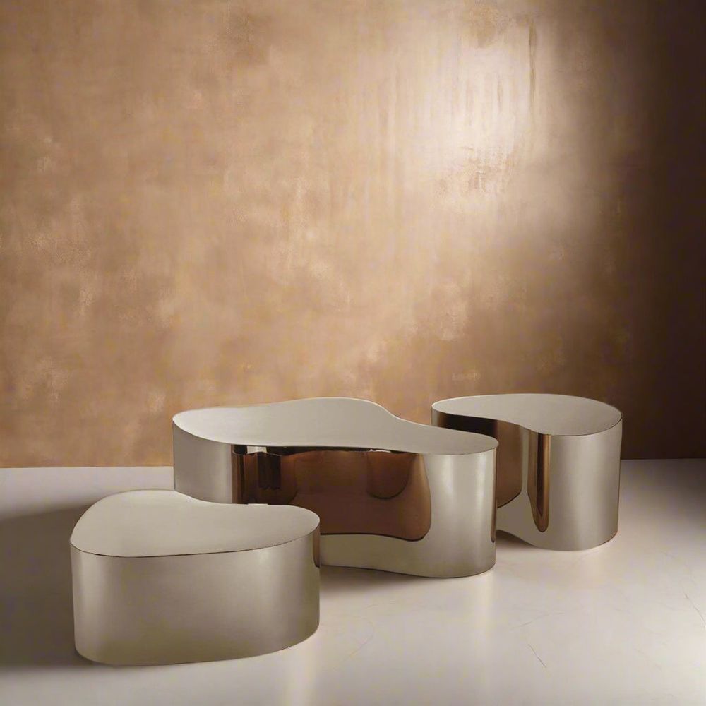 Add a touch of sleek style to any room with this freeform coffee table. Crafted from stainless steel with a lovely rose gold finish this table looks great on its own or in groups. Available in small, medium, and large.